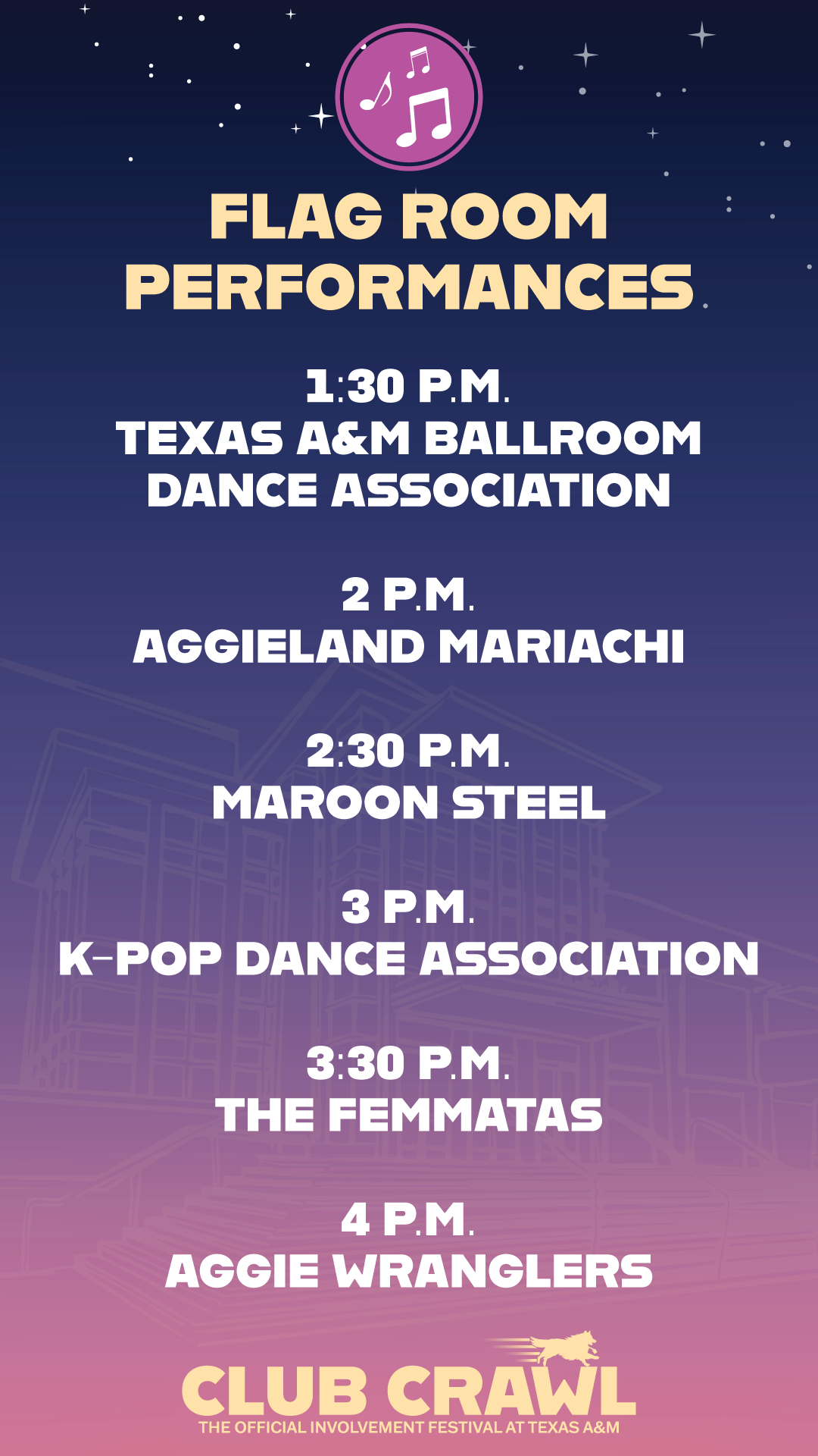 Copyright 2026 • Club Crawl | The Official Involvement Festival at Texas A&M • All Rights Reserved. • Hosted by Division of Student Affairs Department of IT